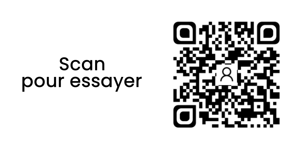 Pour les téléphones plus anciens sans capacité NFC, un code QR à l’arrière de la carte peut-être ajouté afin de permettre un partage fluide de vos informations.